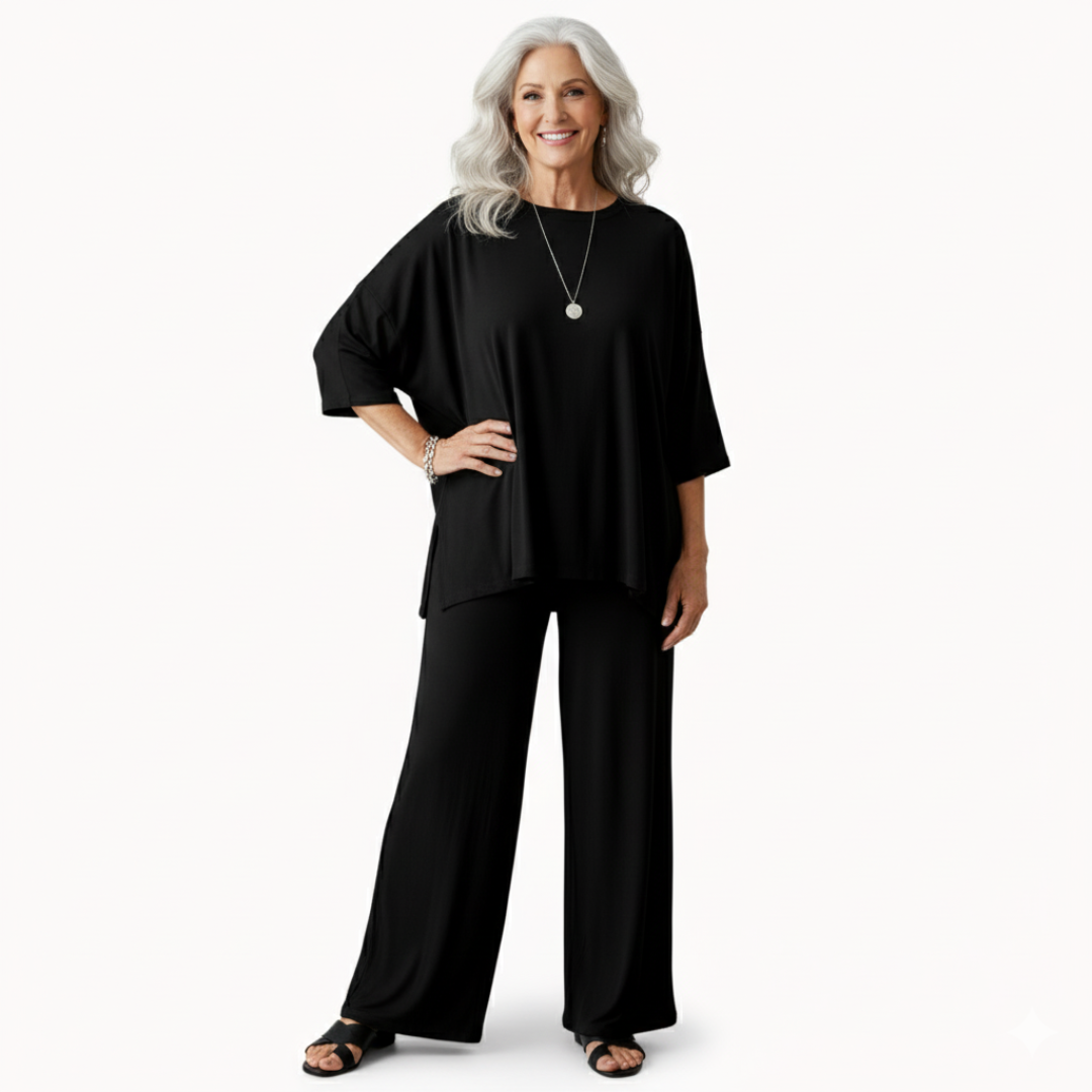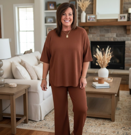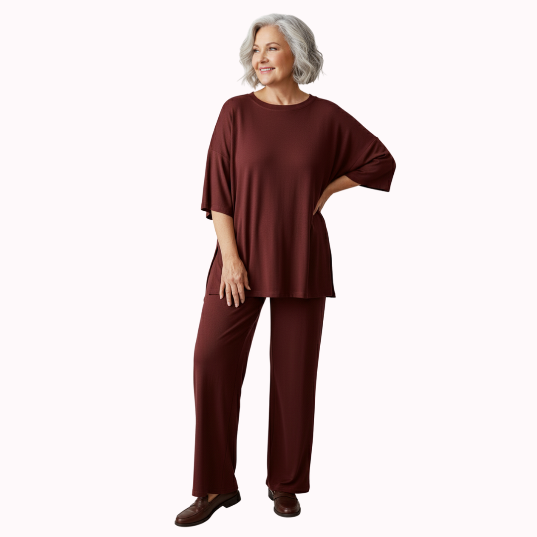 The coordinated top and wide-leg pants create an actual outfit appropriate for errands, casual lunches, or work calls. The pull-on waist means no digging waistbands. This delivers exactly what women over 50 consistently ask for: "looks like a fit but feels like loungewear."